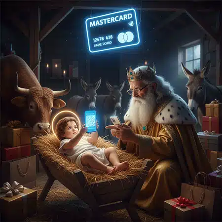 Le Saint-Esprit est remplacé par l’Esprit Marketing. C’est lui qui te souffle à l’oreille : « Achète ! Achète ! Tes enfants ne t’aimeront pas sans ce jeu vidéo ! »